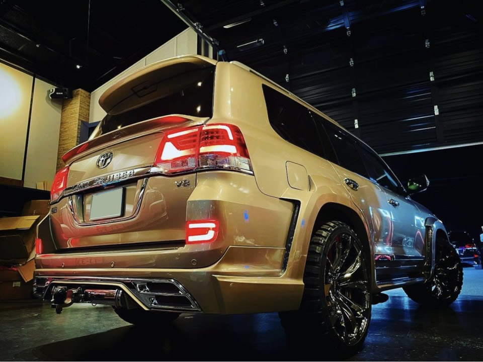 | 詳細情報 | 高騰が続く先代ランクル200にモコリストさん専売カラーのジャレットを装着。33インチの扁平マッドタイヤを組み合わせる事でオンリーワン感が引き立ちます。 希少なボディカラー、ベージュマイカMにワンオフ加工でWALDエアロにガナドールヒッチを取り付け、 WALD 8POTキャリパー装着。 |